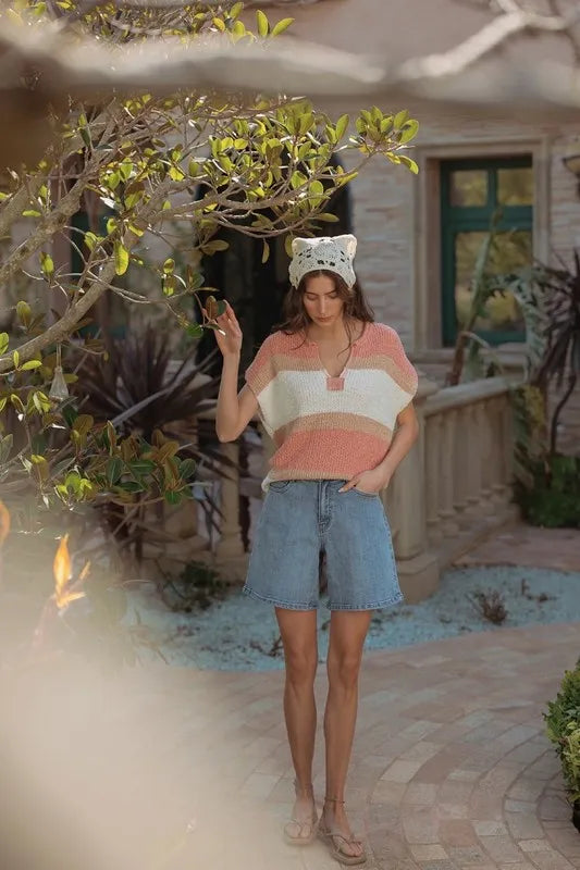 Stay on-trend with this Low Gauge Color Block Textured Sweater Top. The color block design adds a modern and stylish touch to the top. The textured knit fabric provides depth and visual interest. Perfect for layering or wearing on its own for a chic and cozy outfit. Pair with jeans or leggings for a casual yet fashionable look. Elevate your winter wardrobe with this trendy and versatile sweater top.