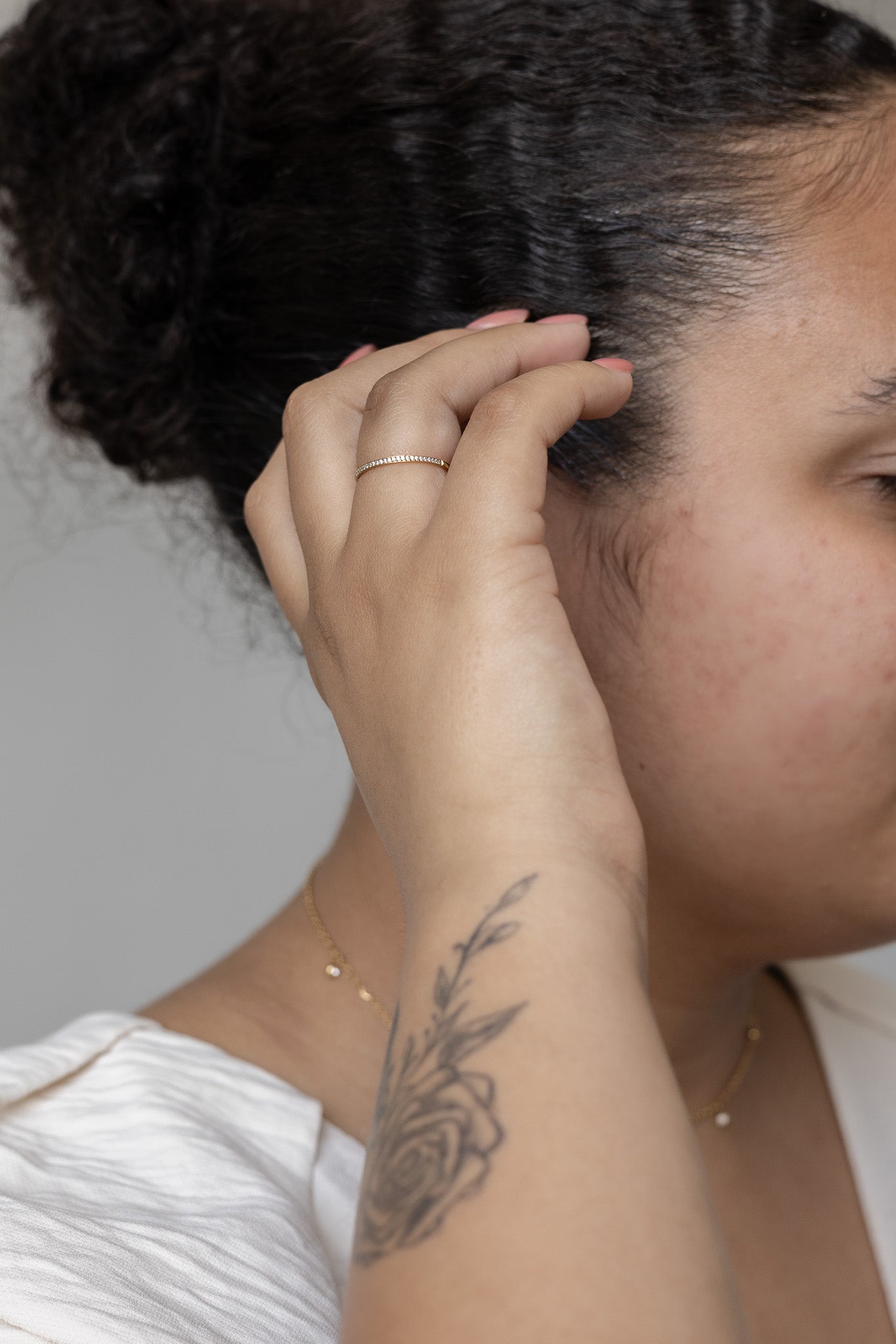 You asked, and we listened! We had some requests for more simple, everyday-living rings, and this is the perfect ring--worn alone or stacked with other rings. Because it is made with stainless steel, it will never turn green (AKA you can actually wear it while washing your hands)! It’s the perfect addition if you are looking for something simple and classy!