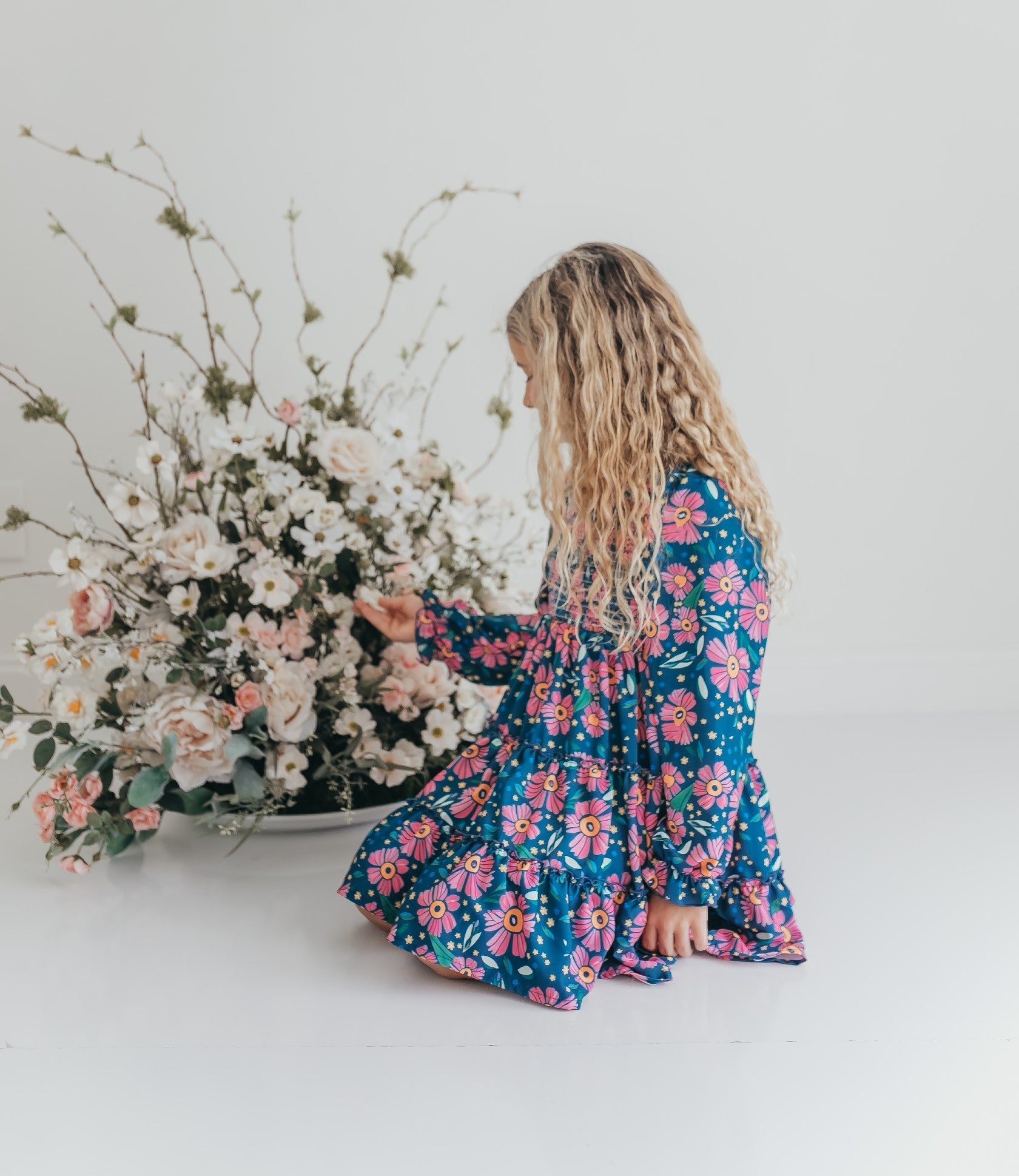 This playful Grace Hot Pink Dress features a charming blue and pink floral print with long sleeves and a flirty three-tiered skirt. The trendy smocking detail adds a fun, textured touch that moves beautifully with you. Perfect for brightening up any day with a splash of color and style!