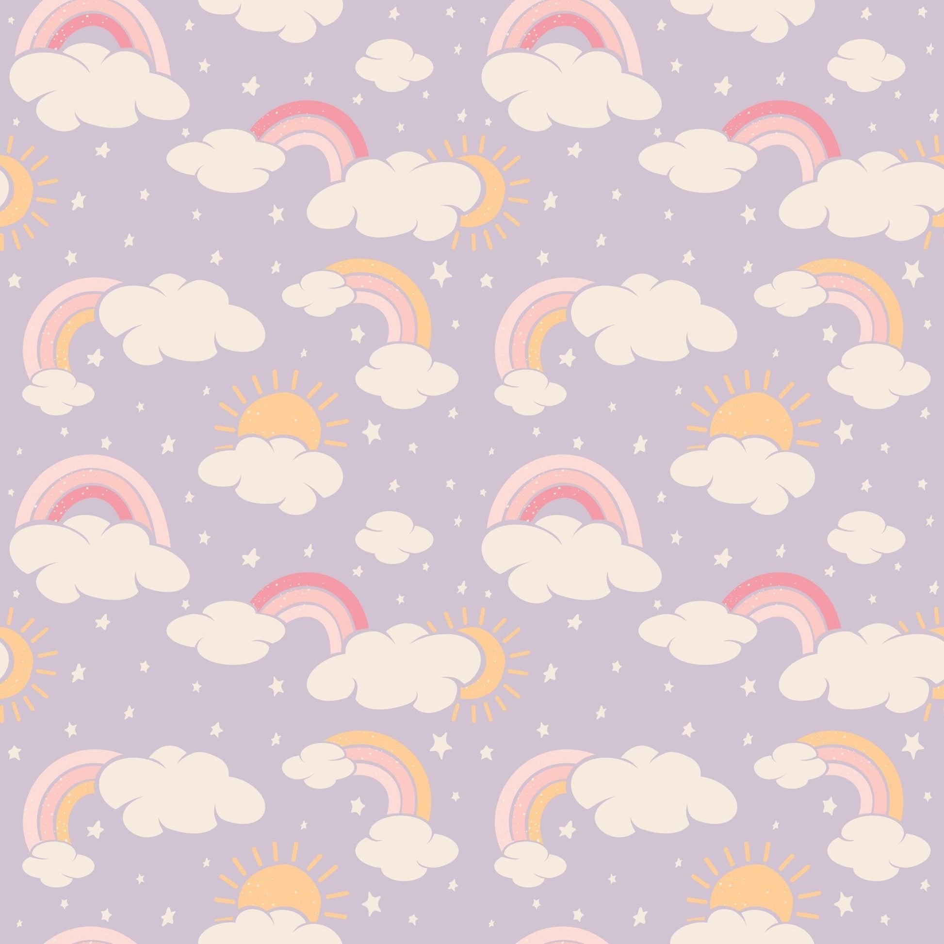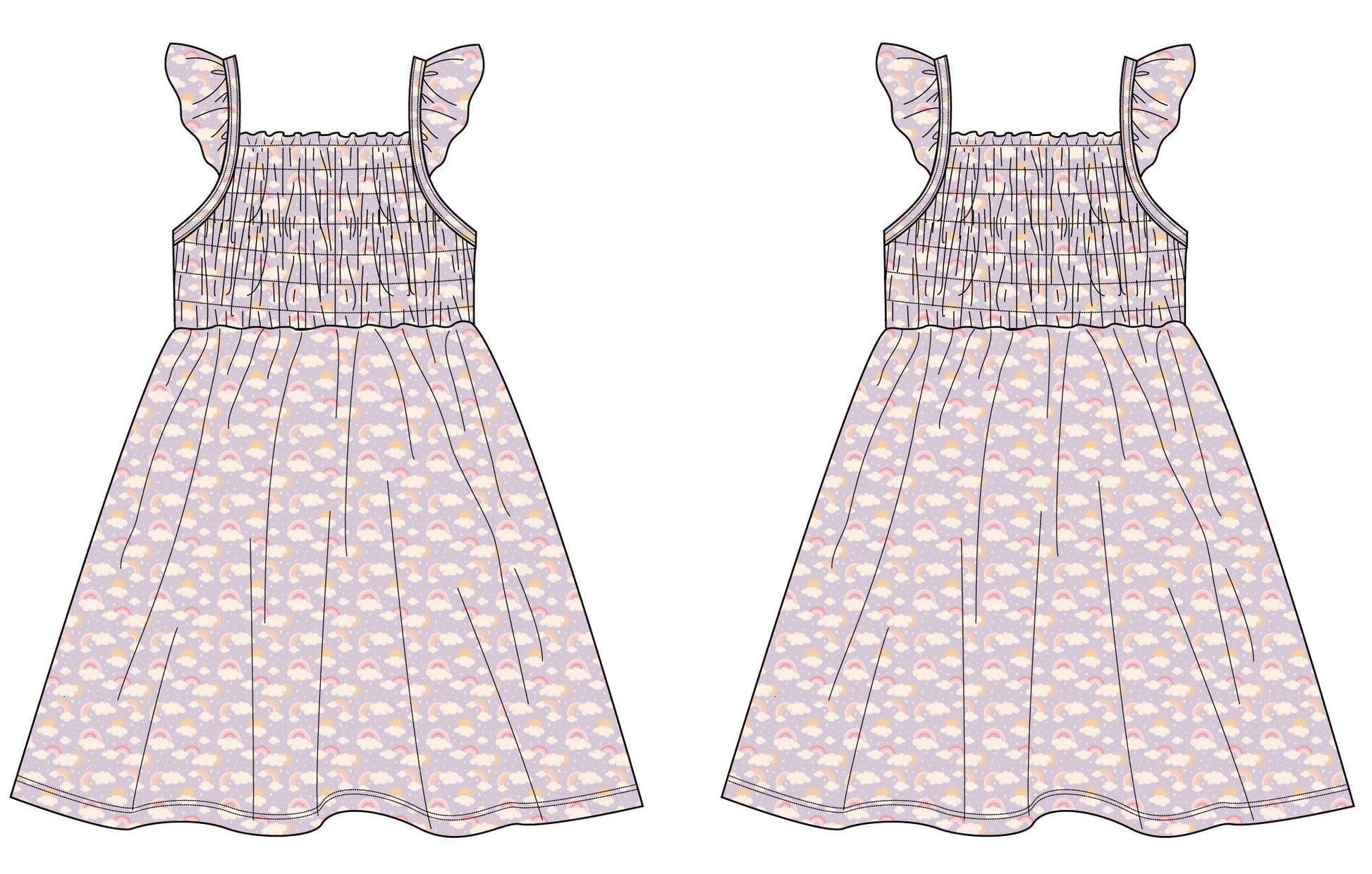 Lavender Rainbows and Clouds Smocked Vintage Dress