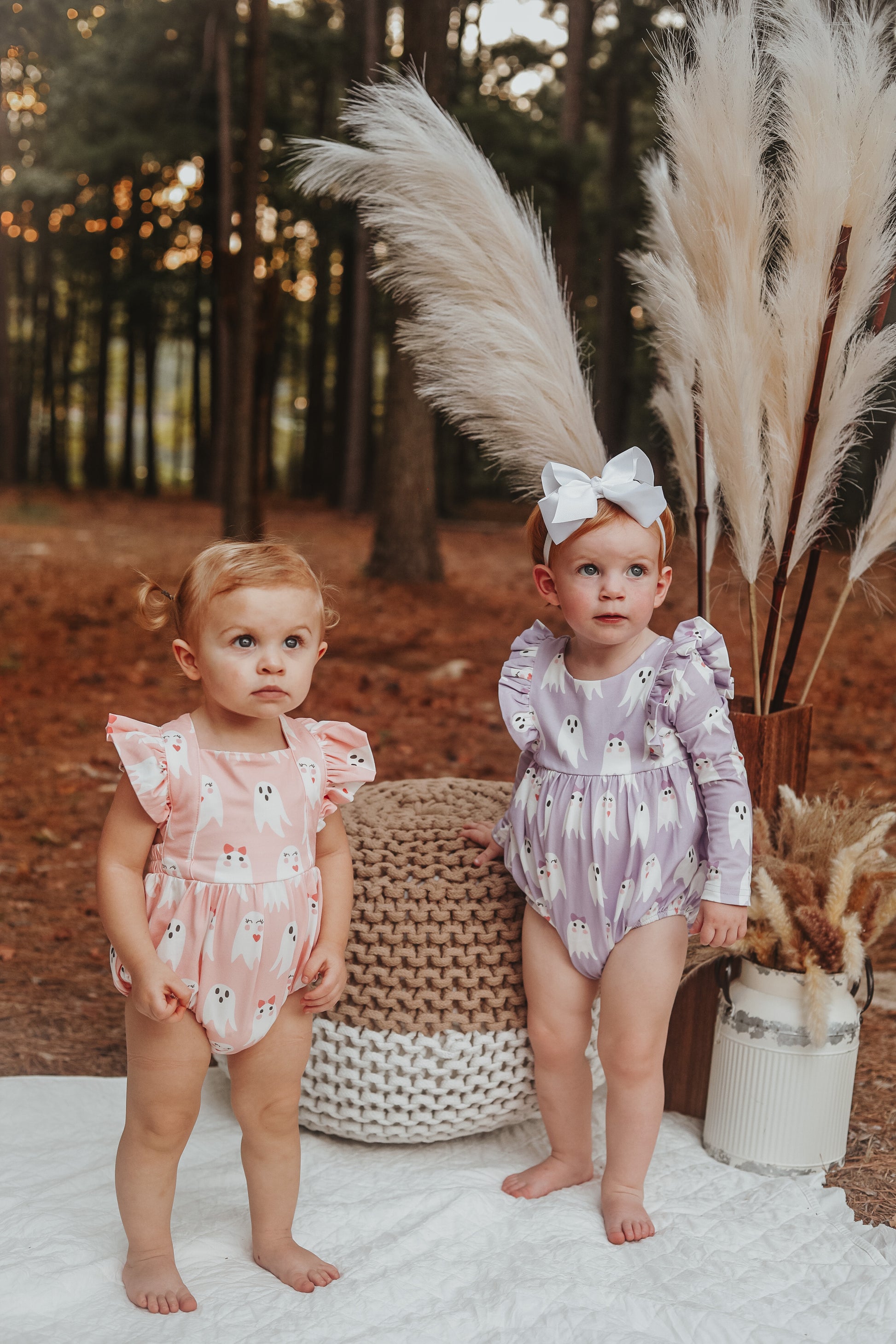 Leah Romper in Purple Girly Ghost | Baby Bubble