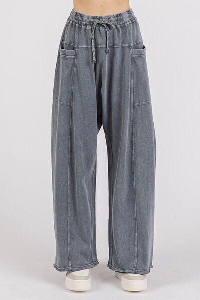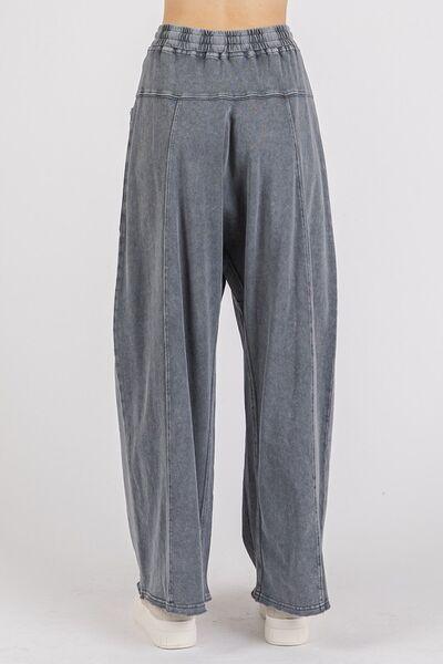 Mittoshop Mineral Wash Elastic Waist Barrel Leg Baggy Pants