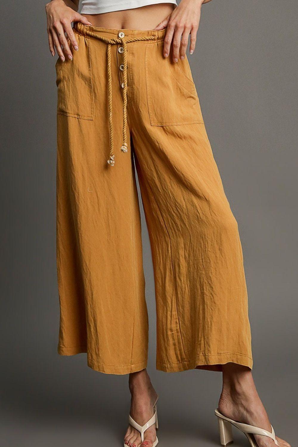 Umgee Full Size Rope Drawstring Wide Leg Pants Plus Size